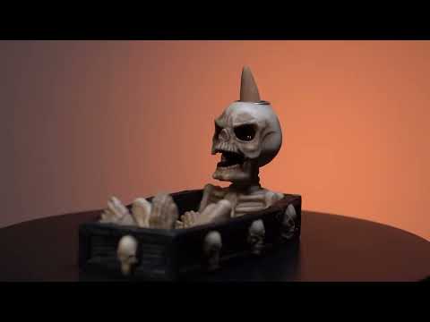 - Mysterious Incenso Burner a forma di scheletro seduto all'interno di una bara