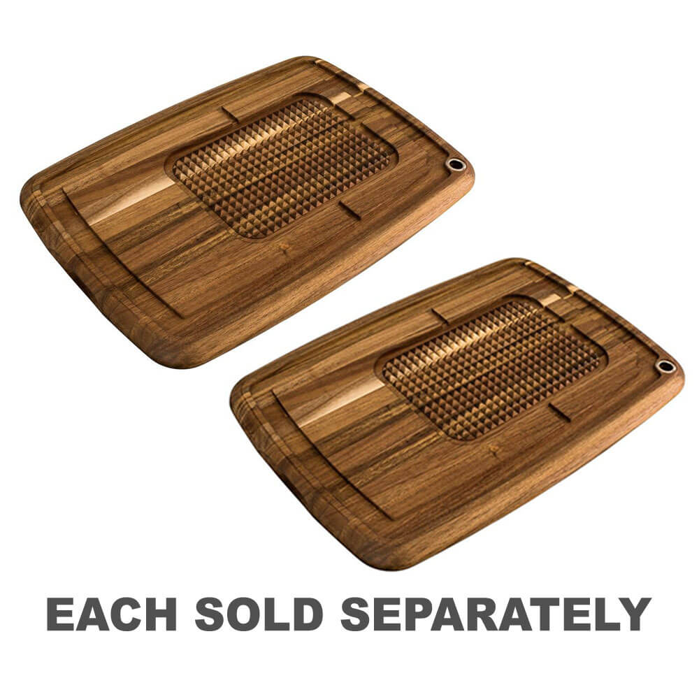 Realizzata dal legno ricco di ametti di acacia, questa tavola intagliata presenta una grande superficie testurizzata che stabilizza polli interi e arrosto di manzo durante il processo di intaglio, mentre le grandi scanalature catturano succhi di frutta e mantengono i contatori della cucina immacolati.