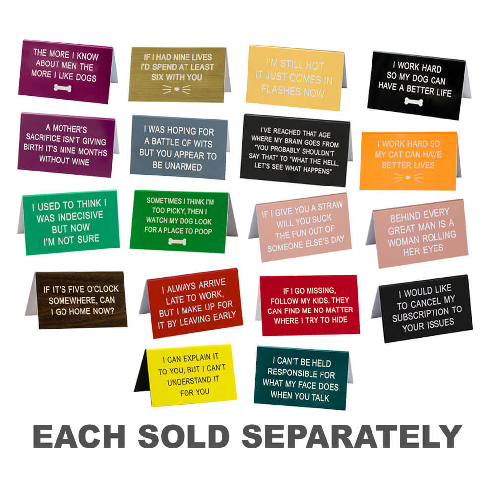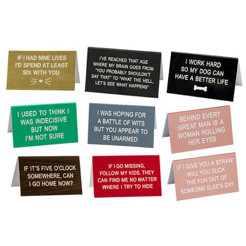 - L'esilarante dire cosa? I segni di Hill Desk offrono la combinazione perfetta di umorismo secco e arguzia iconica.