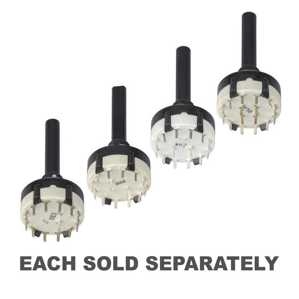 Questi switch hanno un anello rimovibile con scheda che può essere inserita nello switch diversi modi per i requisiti particolari. Ad esempio, se hai acquistato un interruttore 1 Pole X 12 Way (Max), è possibile convertirlo, per esempio, 1 Pole 7 tra le fermate. Hanno un albero 1/4 standard. Foro del pannello 10mm.