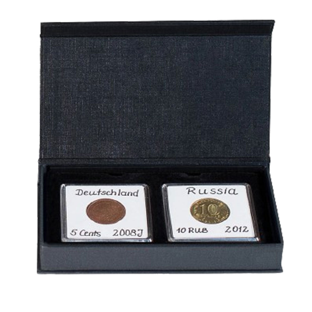 - Progettato per 2 capsule di monete quadrum: tiene e mette in mostra due capsule di monete quadrum.