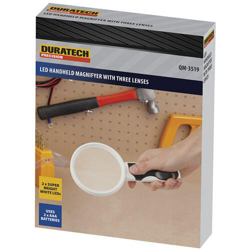 Questo set di ingrandanti a mano illuminato versatile comprende tre obiettivi intercambiabili con ingrandimenti di 2,5x, 5x e 16x per adattarsi a una moltitudine di applicazioni. Il vetro da 2,5x è ottimo per leggere piccoli testo e il LED incorporato significa che questo è ottimo per la lettura della buona notte, non svegliare più il tuo partner con le luci accese. Il 5x viene spesso utilizzato per l'elettronica e/o arti e mestieri, mentre il vetro di ingrandimento 16x è buono anche per i circuiti elettronici e di rielaborazione, mentre è anche utile per i controlli di stampa. La luce emessa dai LED è una temperatura di colore bianco fresco brillante, che illumina efficacemente il soggetto ispezionato.