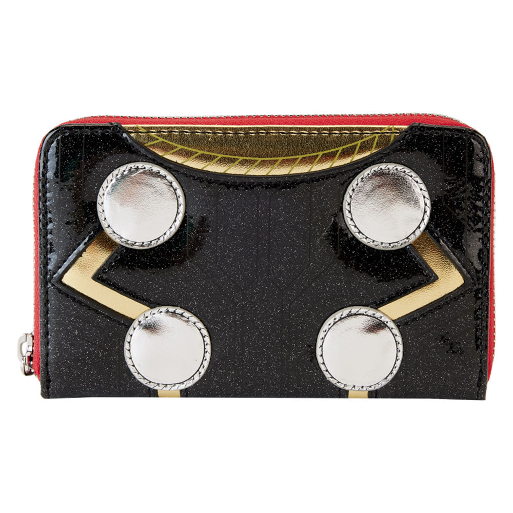 Il saltio di thor metellico Marvel Metallic METALLICA attorno è realizzato in pelle vegana (poliuretano). Il portafoglio zip chiuso con hardware argento lucido. Ulteriori caratteristiche includono applique, debiti, glitter e dettagli stampati. Prendi nota del coordinamento all'interno del rivestimento.