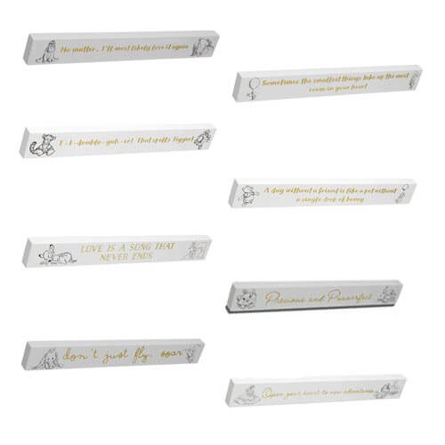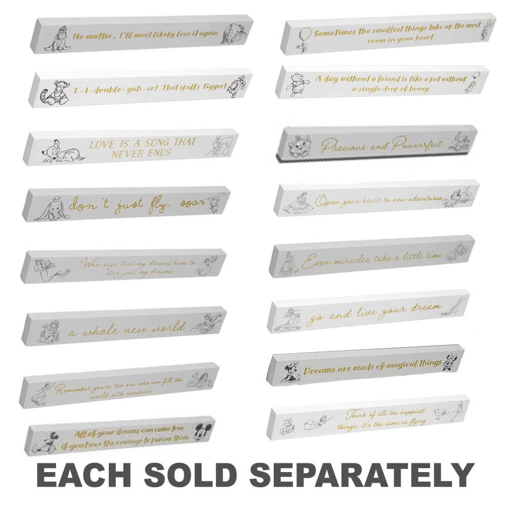 Porta alcune parole di saggezza Disney in qualsiasi spazio con questa targa da collezione Bambi Desk. Questa affascinante targa bianca da 40 cm presenta illustrazioni di Bambi e citazione/sentimento oro. La didascalia legge: l'amore è una canzone che non finisce mai.