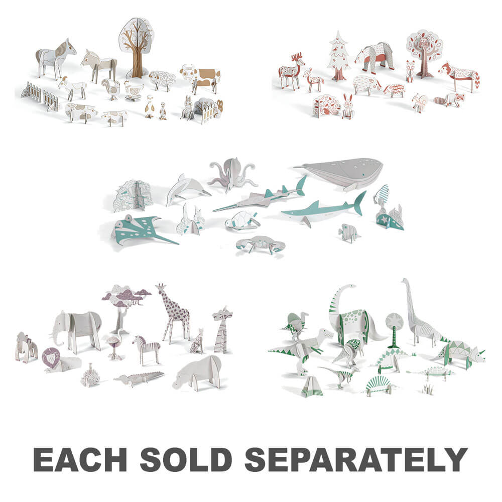 Et kreativt og interaktivt sæt med en række papstykker til farve og samlet, hvilket skaber en skovskovscene med dyr. Når design- og kunstaktivitetskomponenten er komplette, kan børn derefter lege med alle de elementer, han eller hun laver, og det er starten med fantastiske historier! Dette sæt er et FSC-certificeret produkt.