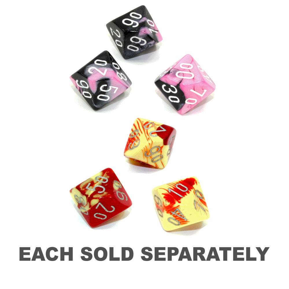 Gemini Polyhedral Black-Pink/white Tens 10 ~ Multiple loose dice are pictured to show all sides and possible color variations. Item Code is for individual dice.