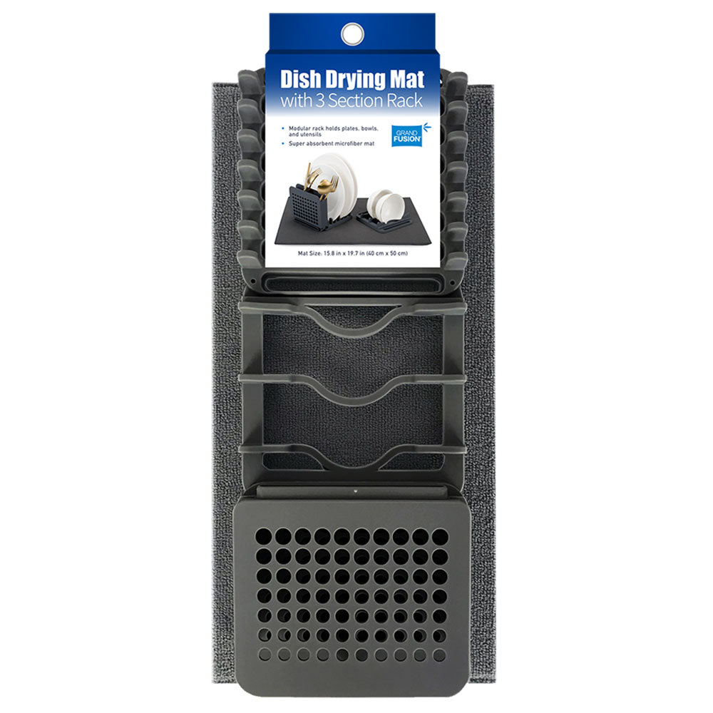 Diese Abtropfmatte für Geschirr von Grand Fusion umfasst einen modularen Trockenständer mit drei Abschnitten (Schüsselhalter, Tellerhalter und Utensilien-Organizer). Mit diesem vielseitigen Wäscheständer können Sie die Komponenten in verschiedenen Konfigurationen verbinden und werden mit einer Mikrofasermatte für zusätzliche Absorption geliefert.