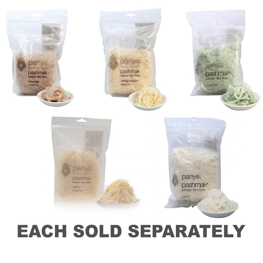 • Pistaziengeschmack: Pariya Pashmak Fairy Floss zeigt den natürlichen und nussigen Geschmack von Pistazien und verleiht der zarten Süße der Süßigkeiten eine entzückende und Gourmet -Wendung.