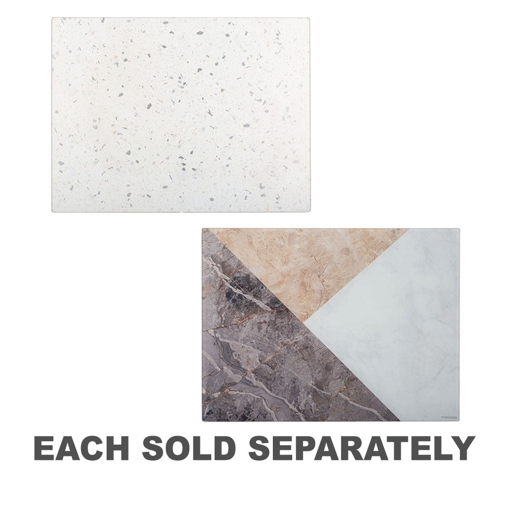 Der Quarzelement -Effekt von Taifun -Elementen Effekt Gla -Arbeitsoberfläche ist sowohl praktisch als auch vielseitig, da sie zur Zubereitung von Mahlzeiten, zum Schutz von Arbeitsflächen und zum Platzieren heißer Pfannen und Gerichte verwendet werden können. Mit einem schönen, auffälligen Quarzdruck funkeln die Spiegelflecken im Licht und nach, die den Effekt von natürlichem Quarzmaterial nachahmen. Die nicht rutschenden Füße geben einen stabilen und sicheren Kontakt, während die Oberflächen vor Kratzern schützt. Dieser starke und langlebige Beschützer besteht aus temperamentvollem Glas, das Geruch und fleckresistent ist und bis zu 180 ° C standhalten kann. Das Board ist leicht zu reinigen und eignet sich perfekt für Vorspeisen, Desserts oder Wurstwaren und wird Ihrer nächsten Dinnerparty eine elegante Note verleihen.