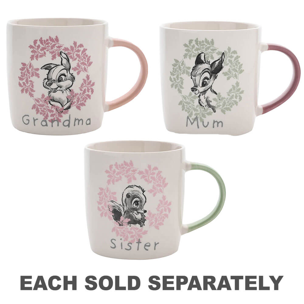 This sweet and tenderly designed mug lets grandmothers who love Disney know how special they are. The new bone China mug features a white finish and is adorned with an adorable, printed image of Thumper from Bambi surrounded by pink leaves, which is repeated on both sides. It is finished by 'Grandma' in silver lettering and large, pastel pink handle.
