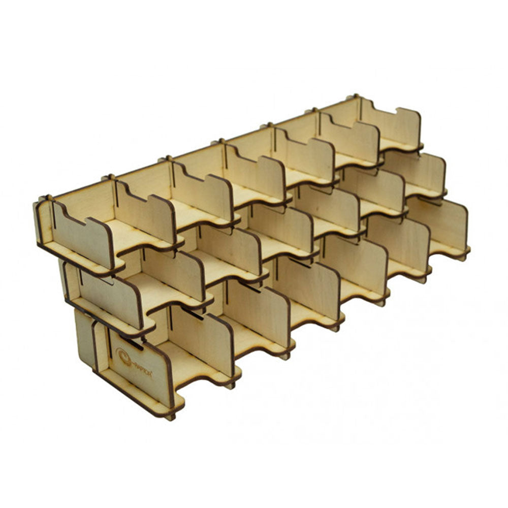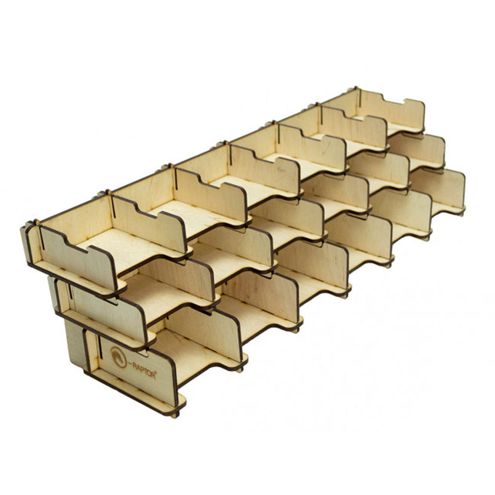 Wooden alternative to our plexiglass card holder e-Raptor Card Holder - 2L Solid. Easy to assemble before gameplay and disassemble after it. Fits about 200 cards.