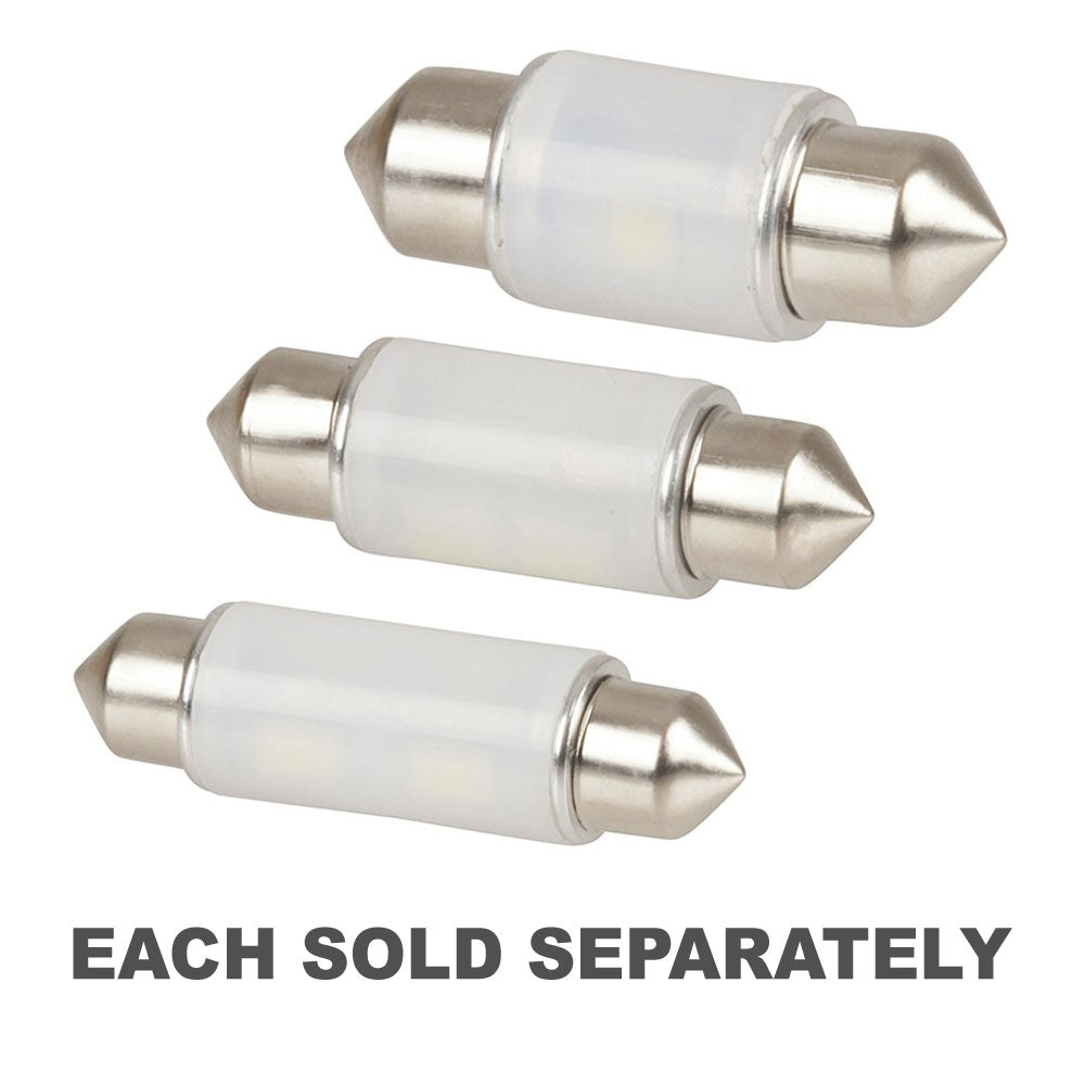 Each globe features a special "3D" type of LED lamp, which provides an extremely even, wide light output that is very similar to a normal globe in style and appearance. This makes them a perfect replacement for interior lights, and automotive lamps where the light fitting has a lot of "clear" elements making other LED globes unattractive to look at. Powered by 12VDC, and suitable for off-road use only.