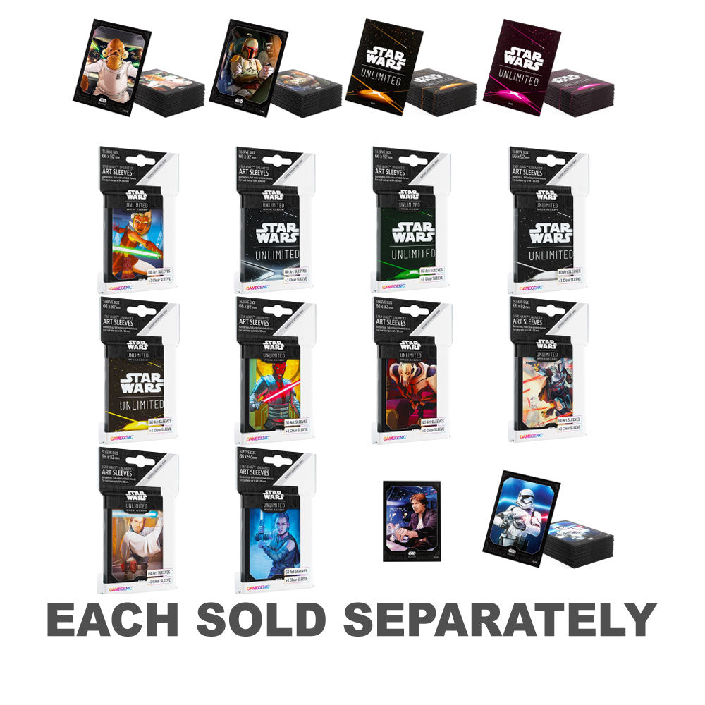 • Protect your favorite Star Wars Unlimited cards with sleeves that feature iconic art.