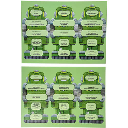 - The robot consists of five tiles, one tile with rules for each phase plus a special ability, which the robot uses during the game.