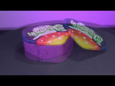 - Features a smiling red mushroom with punny phrase 'Shroomin'