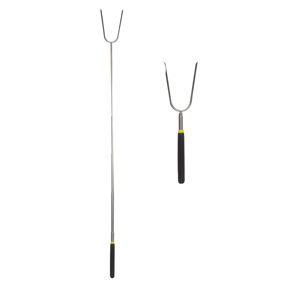 • Wooden handle with thumb roller rotates food to cook evenly.