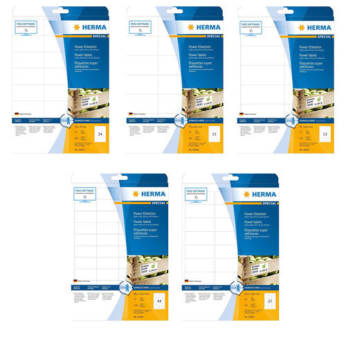Unleash the power of organization with Herma Power Labels, available in A4 size and a pack of 25 pieces! Are you tired of labels that don't adhere securely? These power labels offer superior adhesion for all your labeling needs. Whether you're organizing files, labeling products, or creating signage, these labels ensure long-lasting attachment on any surface. Their A4 size provides ample space for detailed information or bold designs, while their strong adhesive ensures they stay put. Say goodbye to labels that peel off and hello to reliable adhesion with Herma Power Labels, your ultimate labeling solution for any task!