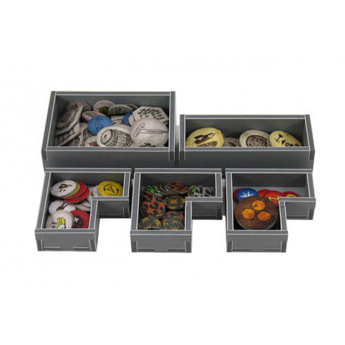 • Inserto compatible con Robinson Crusoe® y el Viaje del Beagle Vol. 1® expansión. El diseño proporciona almacenamiento eficiente y un juego mejorado. Las bandejas se pueden utilizar durante el juego y ayudan enormemente en los tiempos de preparación y retirada. Las reglas y tableros actúan como tapa encima de las bandejas. Este producto consta de un paquete plano de 4 láminas Evacore. Las bandejas requieren montaje, que es rápido y divertido, utilizando pegamento PVA común. Las instrucciones detalladas están incluidas en el paquete. Nota: Inserto diseñado para juego con dimensiones exteriores de caja de 29,4 x 29,4 x 7,2 cm.