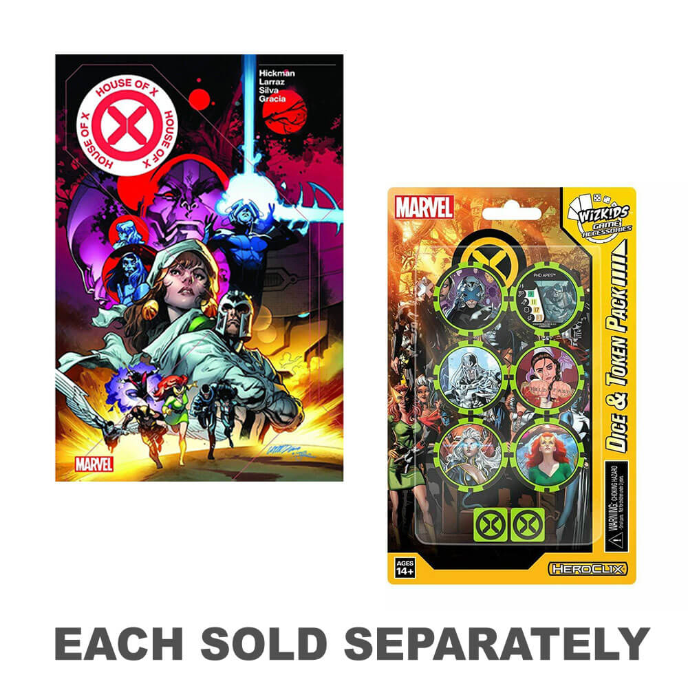 Los paquetes de dados y tokens contienen 2 dados personalizados con un logotipo especial para que coincida con el conjunto, ¡y 6 tokens de acción con personajes favoritos de los fanáticos del lanzamiento!