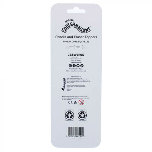Set of two pencils with cute Squishmallows characters Sawyer Squirrel and Malcolm Mushroom.