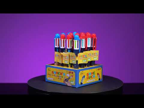 Scava la tua scrittura con questa penna per giocatori di novità! Funziona icone pixel con testo che legge "Game Over". Con 6 colori con cui scrivere: nero, blu, rosso, arancione, verde, viola.