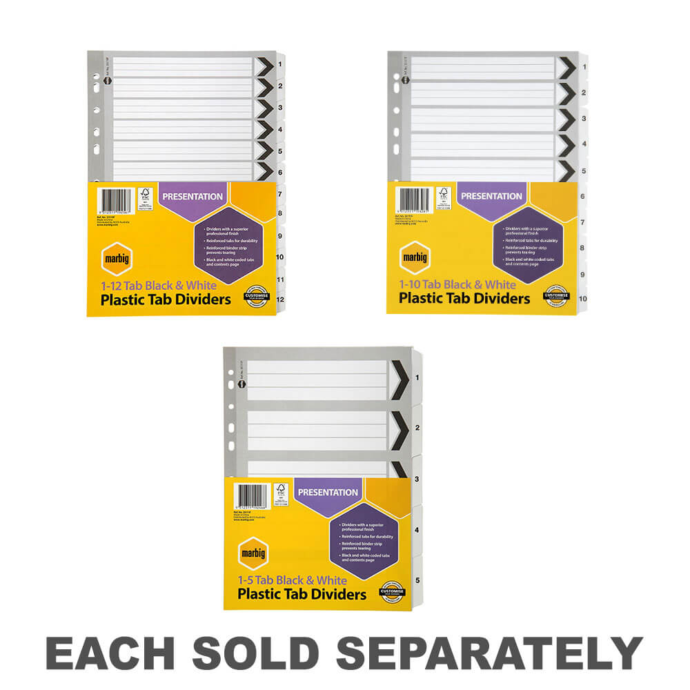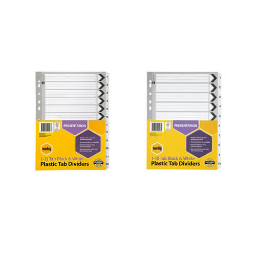 Gli indici e i divisori di Marbig sono ideali per l'uso in tutti i leganti e i file dell'arco a leva. Disponibile in una varietà di schede e colori. Organizzare il deposito è ancora più semplice con Marbig!