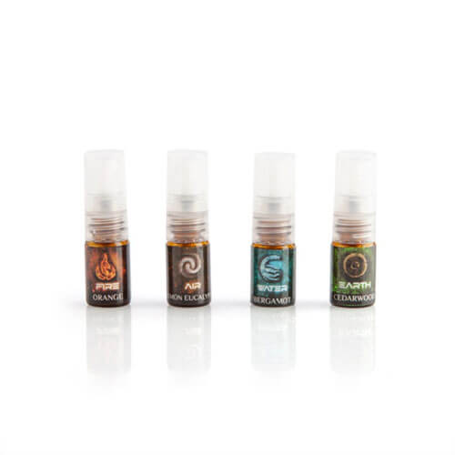 • 4 éléments et mélanges d'huiles essentielles: incendie / orange, eau / bergamote, eucalyptus air / citron, terre / cèdre.