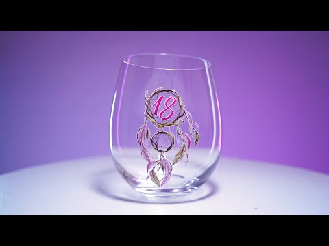 - Verre à vin sans stime soufflé à la main avec un DreamCatcher fantaisiste "Joyeux anniversaire".