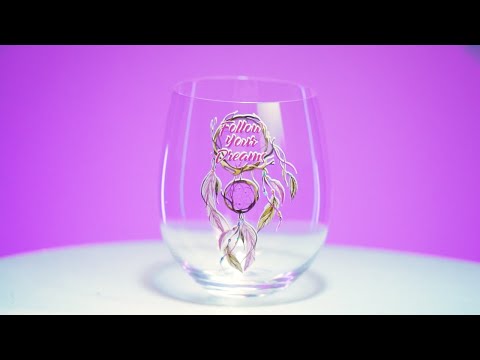 - Verre à vin sans soupe soufflé à la main avec un DreamCatcher fantaisiste "Suivez vos rêves".