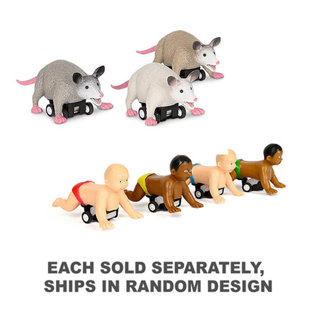 これらのレーシングポッサムは、スピード用に構築されたポッサムのスープを塗った、プルバック、4輪バージョンを特徴としています。彼らがあなたのゴミを掘ったり、鹿からダニを食べたり、あなたの場所の後ろの路地でドラッグレースを食べているかどうかにかかわらず、これらの3-3/4 "(9.5 cm)のソフトビニールとプラスチックのゴミのタイタンは本当にあなたの心に走っています。
