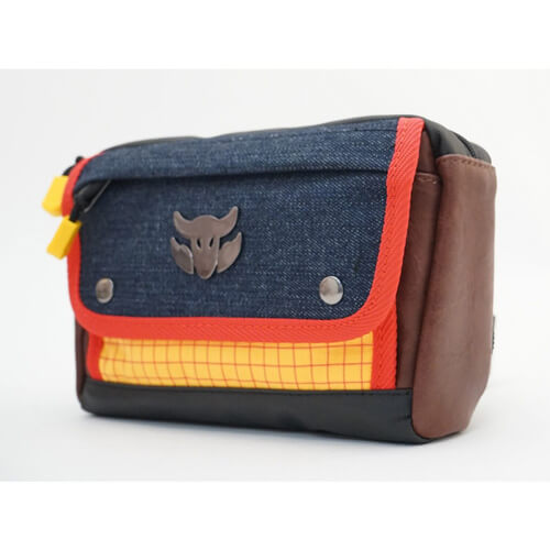 • ナイロントリムとフロントにかわいいメタルチャームを備えたフェイクレザーとデニムの要素が特徴 /li>