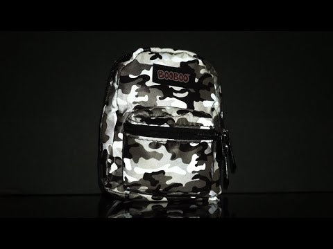 - ブーブーリフレクティブミニバックパックグリーン/グレーの迷彩。