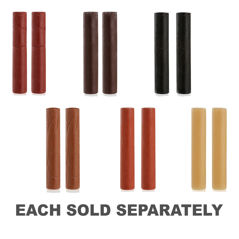 Pure beeswax sticks designed for filling cracks and holes in timber. Can be sanded and buffed to a fine finish and coated with most materials. Gilly's beeswax sticks are available in black, dark brown, mid brown, orange, red brown or pale brown (natural beeswax colour). Colours can be blended. Use on raw timber before applying any other finish.