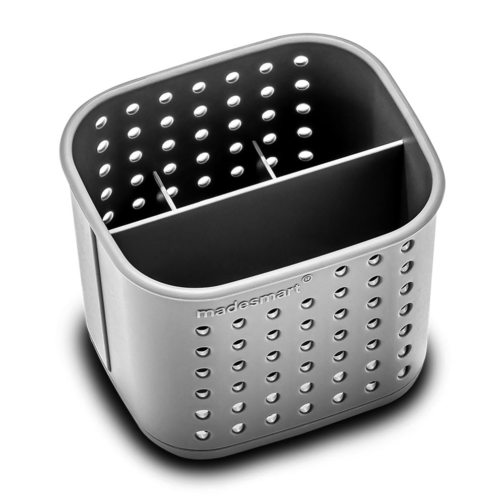 Madesmart Pocket Sinkステーションには、皿洗いのツールが整頓されており、含まれています。分割された内部コンパートメントは、スポンジ、スクラバー、皿の杖のためのスペースを提供し、換気穴は衛生を改善するためにより速い乾燥を促進します。取り外し可能な排水ベースは、簡単に掃除できるようになり、ソフトグリップ材料は、ステーションを所定の位置に保ちながらカウンタートップを保護します。