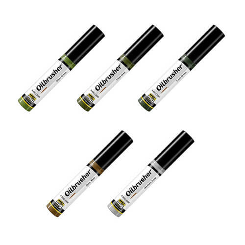 新しいオイルブルーシャーは、究極の革新的なモデリング製品です。オイルブルーシャーには、モデリングの使用専用に配合された高品質のオイルペイントが含まれており、瓶から直接適用される完全な一貫性に希釈されています。キャップには、パレットや段ボールの一部に油絵の具を置くことなく、色をモデルに直接適用するための排他的な内蔵の高精度ブラシがあります。この進化により、オイルが乾燥し、製品が不必要に消耗するのを防ぎます。さらに、最新の容器には、ブラシから余分な塗料を除去するディスペンサークリーナーシステムが含まれており、先端にちょうど適切な量を残します。従来の油絵の具は乱雑で、油絵の下がキャップの周りを乾燥させて詰まらせたときに開けるのが困難でした。これはオイルブルーシャーでは起こりません、それは常に清潔で常に安定しています