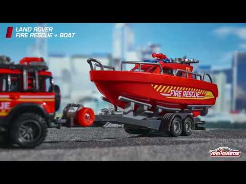 Majorette Fire Rescue Land Rover met bootmodelauto