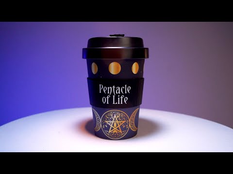 - Matchende svart anti-spill lokk og beskyttende silikonbånd med 'Pentacle of Life' i en slående hvit skrift.
