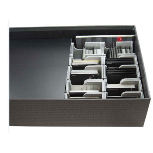 • Denne kampanjen 2 -innsatsen er designet for å være kompatibel med Kingdom Death Monster® -utvidelser, og gir plass til 560 mer standardstørrelse og 300 flere girkort.