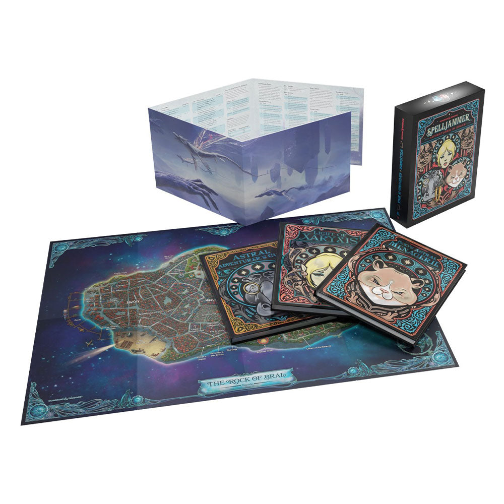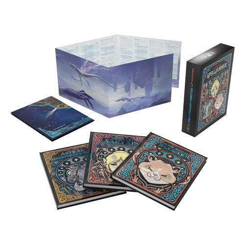 • Przewodnik Astral Adventurer-64-stronicowa książka w twardej okładce prezentująca samolot astralny jako ustawienie kampanii, w tym opcje postaci oparte na kosmosie, zaklęcia, magiczne przedmioty, zasady Spacefaring, statki i wiele innych