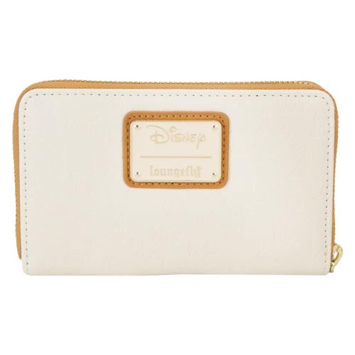 Loungefly Disney I Heart Disney Dogs Triple Lewenticular Portfel z suwakiem jest wykonany ze skóry wegańskiej (poliuretan). Portfel zamykany zamknięty metalowym sprzętem w kolorze złotym. Dodatkowe funkcje obejmują aplikacje, debossowane, wytłoczone, soczewkowe i drukowane szczegóły. Zwróć uwagę na koordynowanie podszewki wewnętrznej