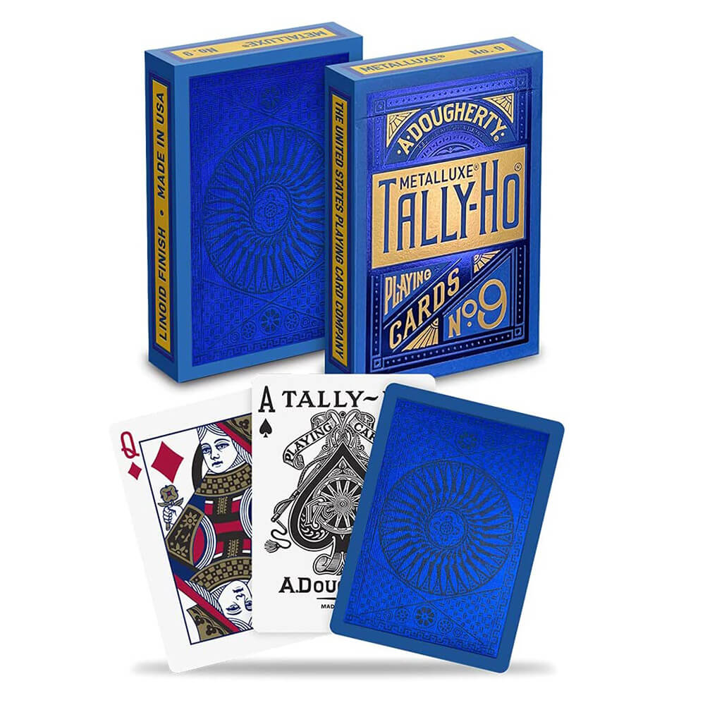 • Tally-Ho Metalluxe Playing Cards presentano una classica finitura linoide che solo la società di carte da gioco degli Stati Uniti può produrre.