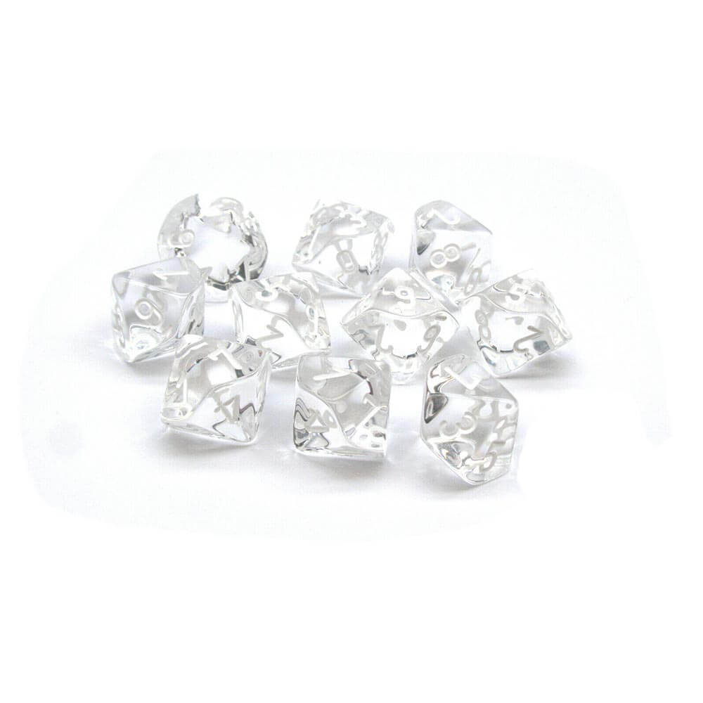 - Set D10 dieci a facciate - Clear w/ White Translucent (10)
