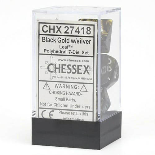D7 set da dadi set foglia poliedrica (7 dadi/oro nero/argento)