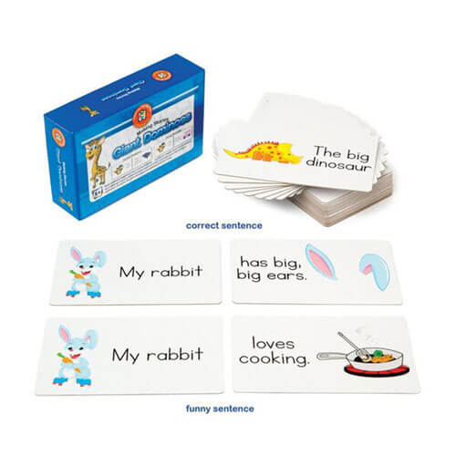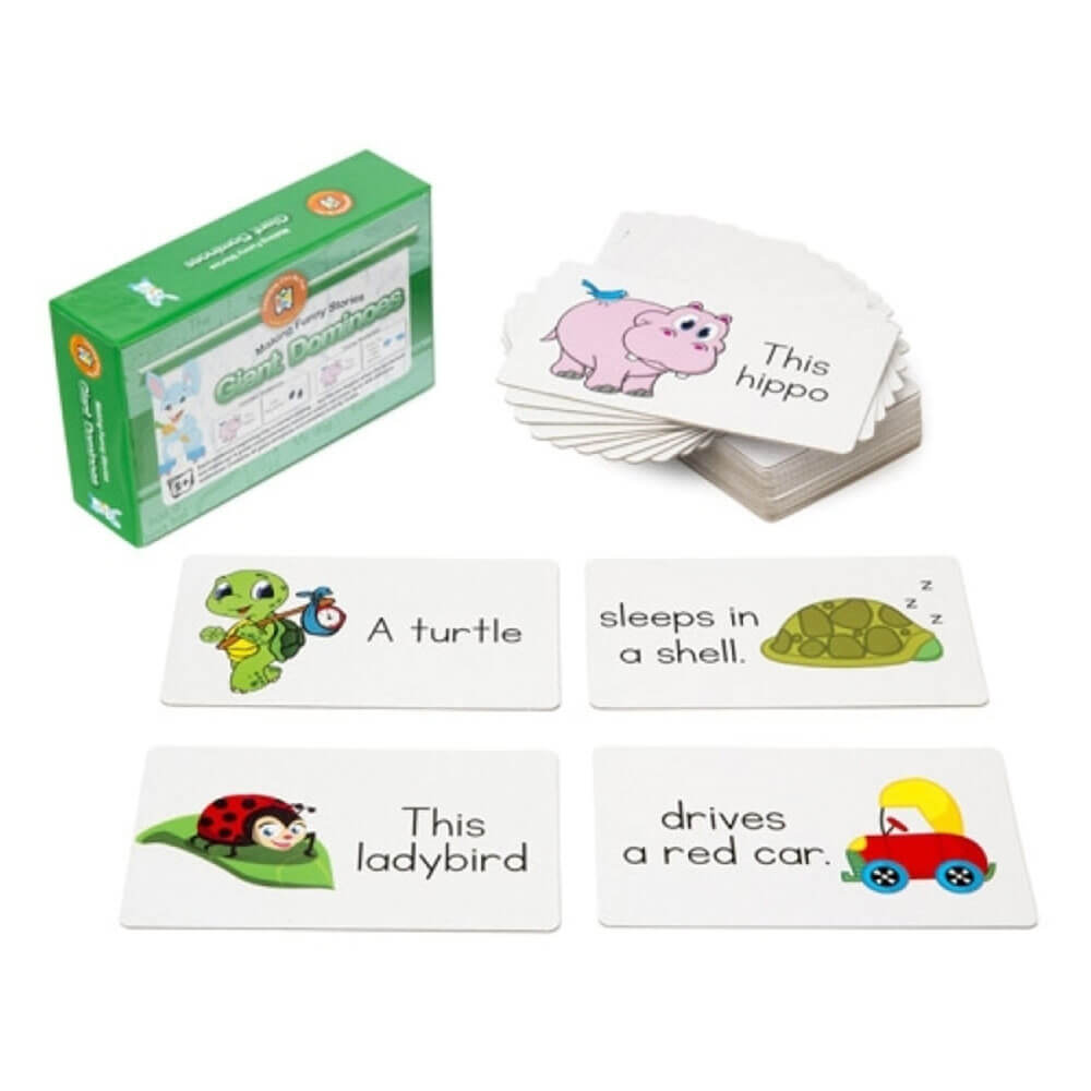Questi apprendimenti possono essere divertenti a fare storie è divertente che i domino sono perfetti per aiutare i nuovi studenti a sviluppare le loro abilità linguistiche. I domino contengono una varietà di parole e frasi che possono essere combinate per creare frasi divertenti che possono quindi essere lette ad alta voce, scritte o stampate.