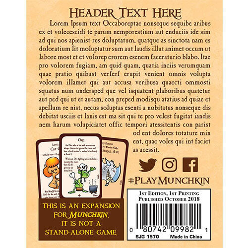 • Questa è un'espansione per Munchkin; Non è un gioco autonomo.