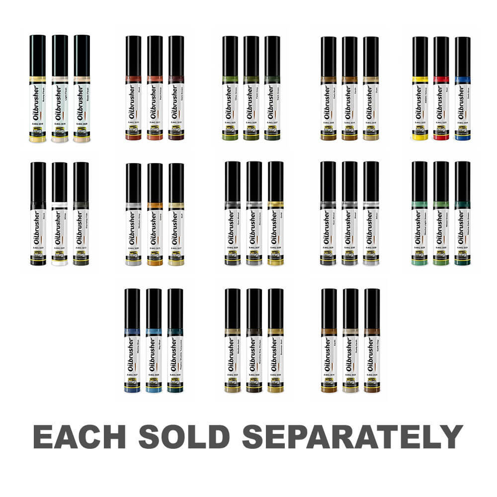 Oilbrusher is the innovative oil paint with built-in applicator brush; this unique and innovative AMMO feature ends the need to clean up messy oils after each use. The modern container also includes the dispenser–cleaner system which removes access paint from the brush. This revolutionary design saves both product and cost, while offering a clean and simple to use alternative to traditional oils which are both expensive and inconvenient.