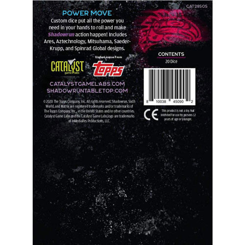 • Utilizzabile con qualsiasi edizione di Shadowrun o ogni volta che hai bisogno di dadi a sei lati!