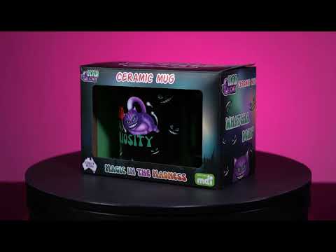 Você ficará bem felino o dia todo! Caneca de cerâmica com um gato louco atrevido cercado por rostos sorridentes. Somente lavagem à mão - não é seguro para microondas ou lava -louças.