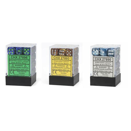 D6 DICE LUSTROS 12mm (36 dados)