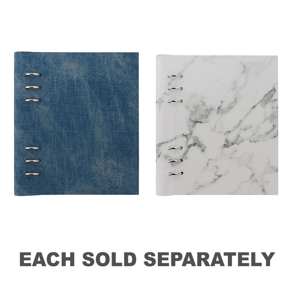 • O clipbook A5 padronizado por Filofax em jeans combina moda com funcionalidade em um formato maior
